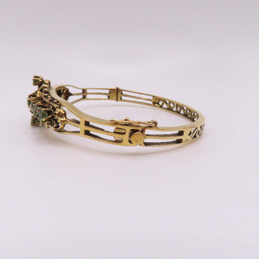 Vintage 14K Yellow Gold Peridot Filigree Ornate Hinged Bangle Bracelet 6-3/4" 17.7g