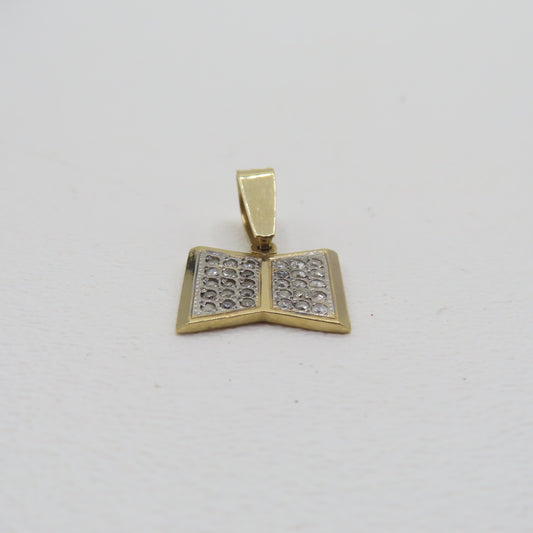 14K Two-Tone Gold Diamond Book Pendant 1" 3.5g