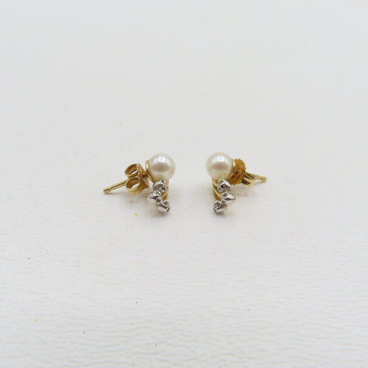 14K Two-Tone Gold Pearl and Diamond Stud Earrings 1.6g