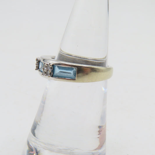 14K White Gold Blue Topaz and Diamond Band Ring Size 5 3.4g