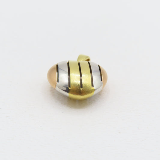 18K Tri-Tone Gold Hollow Heart Pendant 1" 4.2g