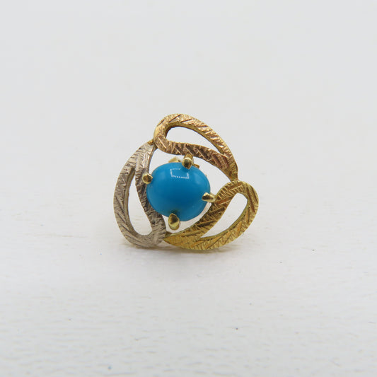 18K Gold Round Turquoise Stud Earrings 5.2g