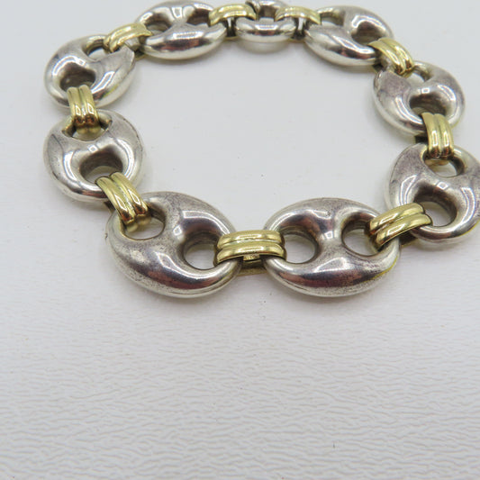 Sterling Silver & 18K Yellow Gold Puffy Mariner Link Bracelet 7-1/4" 26.5g