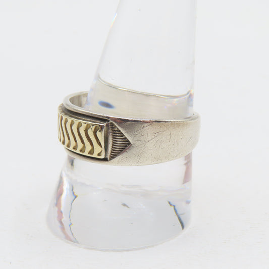 MM Rogers Sterling Silver & 14K Gold Two Tone Band Ring Size 11 6.5g