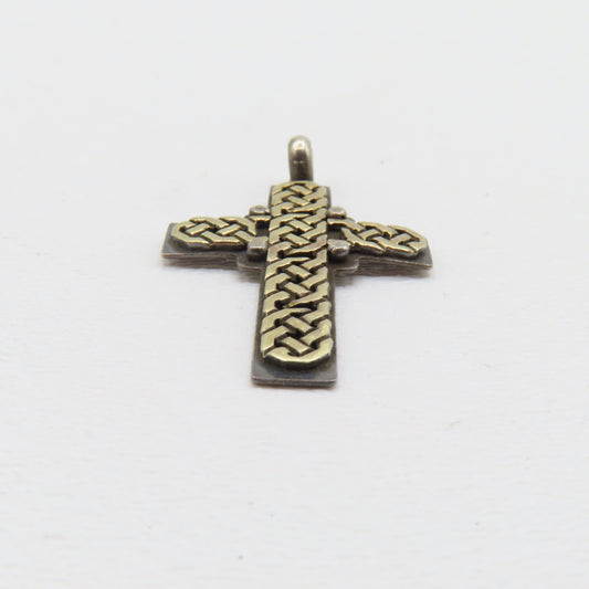 Sterling Silver & 18K Yellow Gold Celtic Knot Cross Pendant 1" 5g