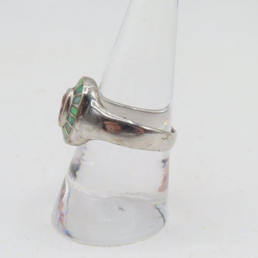 Sterling Silver 925 Modernist Turquoise Multi Gemstone Inlay Ring Size 5 4.7g