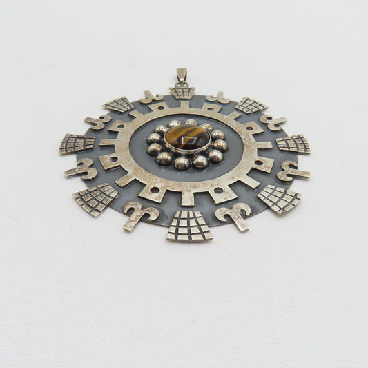 Iguala FCR Sterling Silver 925 Tigers Eye Pendant Mexico 4" 48.3g