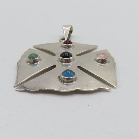 Sterling Silver 925 Taxco Mexico Multi Gemstone Cross Pendant TO-57 13.7g 2-3/8"
