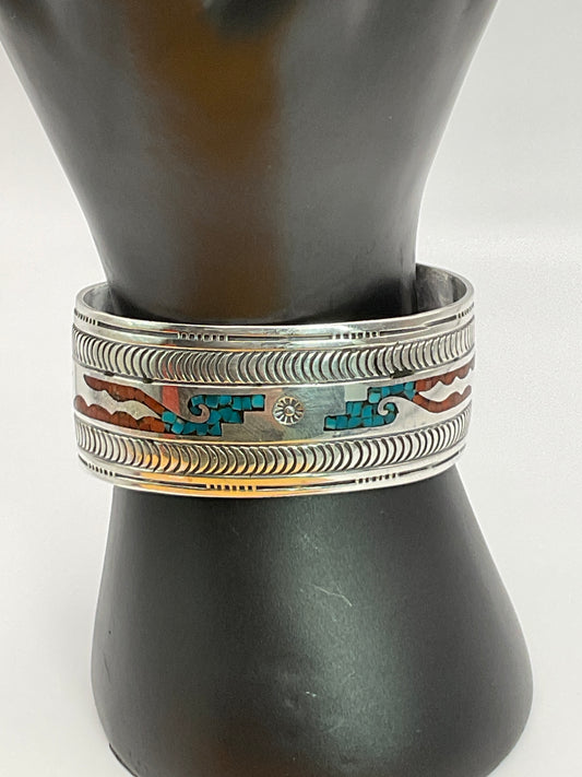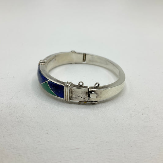 24.2g .970 Sterling Bangle Lapis/ Malachite