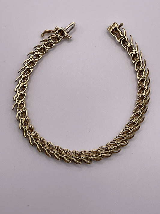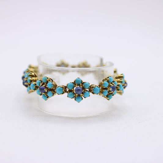 Vintage 14K Yellow Gold Turquoise Daisy Flower Bracelet 7" 33.9g