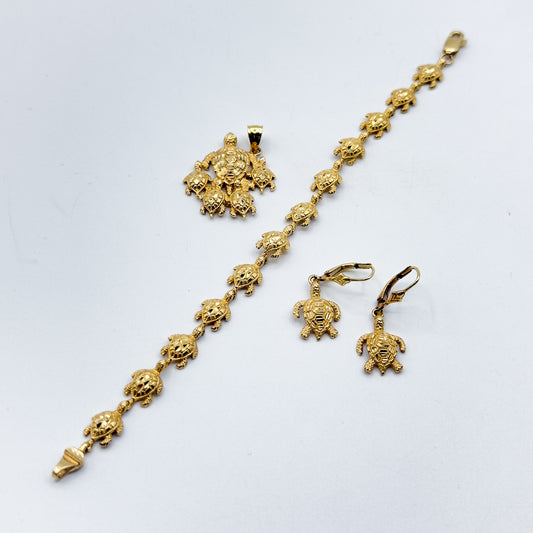 14K Gold Turtle Bracelet Pendant Dangle Earrings Set 6–6.5" Wrist 14.9g