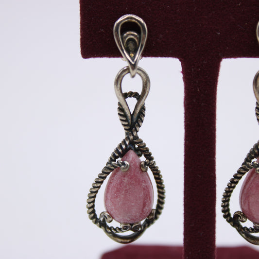 Carolyn Pollack Relios Sterling Silver Pink Rhodonite Rope Dangle Earrings