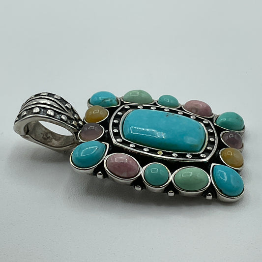 Carolyn Pollack Relios Sterling Silver Turquoise Multi Stone Rectangle Pendant 21.7g