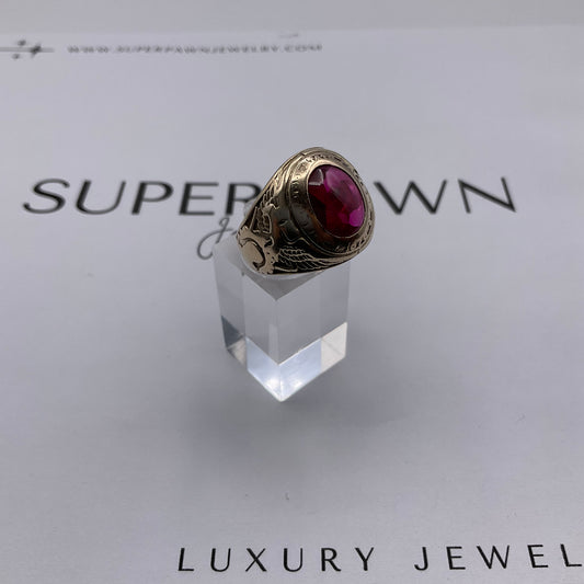 Vintage 10K Yellow Gold 5ct Red Oval Gemstone State College Class Ring