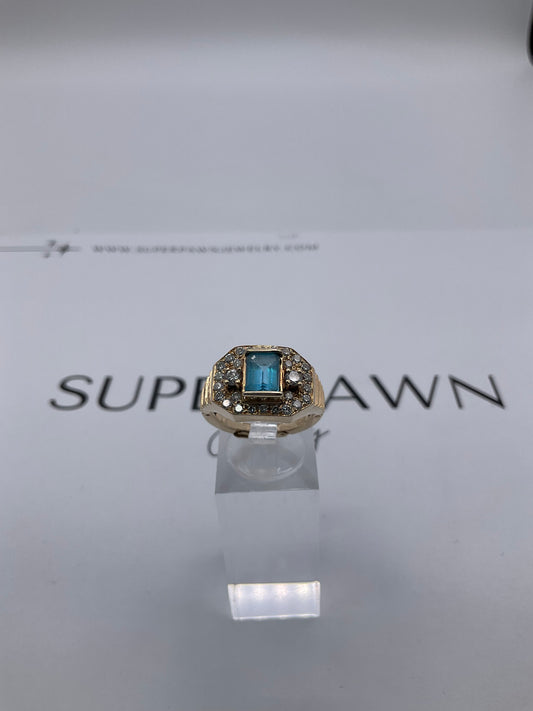 14K Yellow Gold Emerald Cut Aquamarine & Diamond Ring – 7.8g