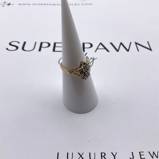14K Yellow Gold & White Gold Diamond Cluster Ring – Size 5.5