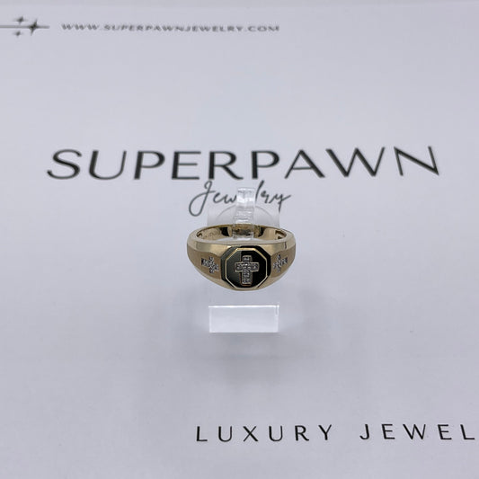 5.3g 10k Yellow Gold Men's Diamond Cross Ring Size 10