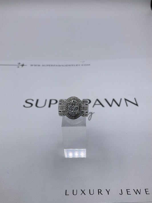 10K White Gold Diamond Cluster Ring with Princess, Baguette & Round Diamonds – Size 11