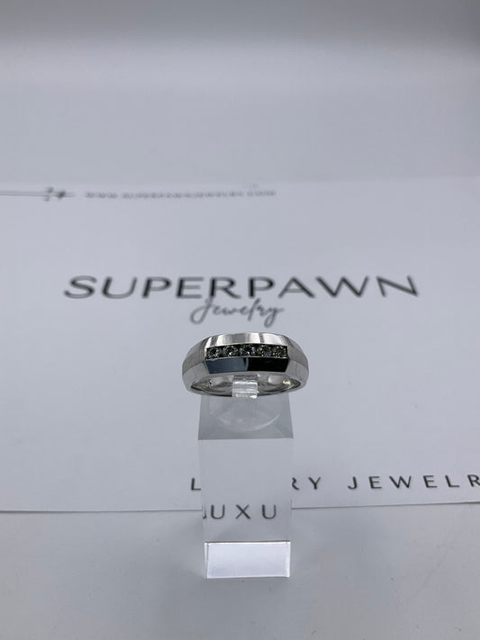 14K White Gold Men’s Ring with Flush-Mounted Diamonds – Polished & Brushed Finish – Size 10