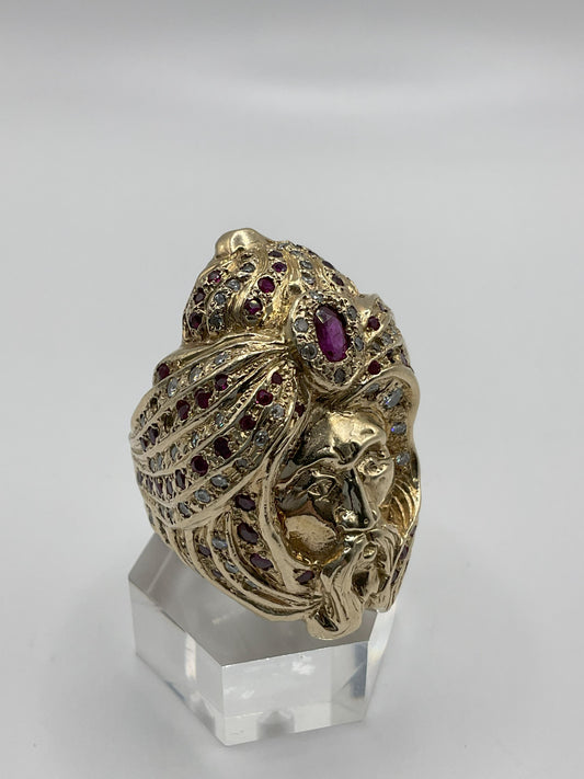 69.9g 14k Yellow Gold Diamond/ Ruby Ring custom ring Size 8