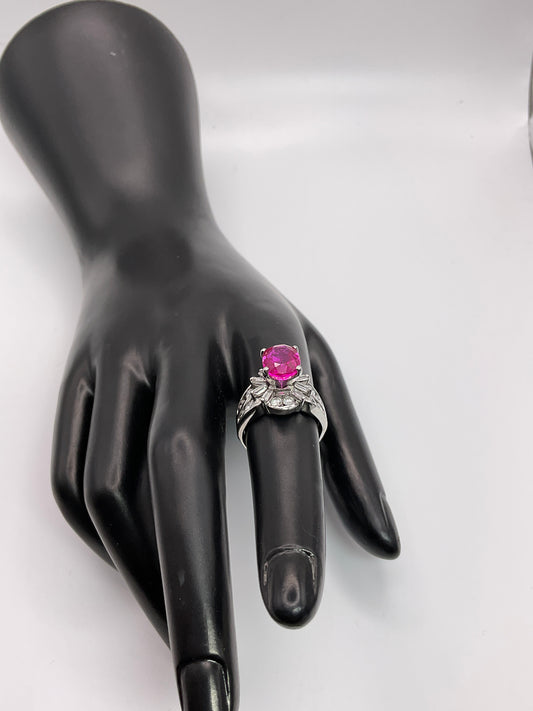 5.8g 14k WG Pink Gemstone/Diamond Ring Size 6
