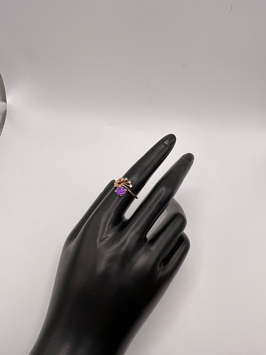 2.5g 10k YG Purple Gemstone Ring Size 6