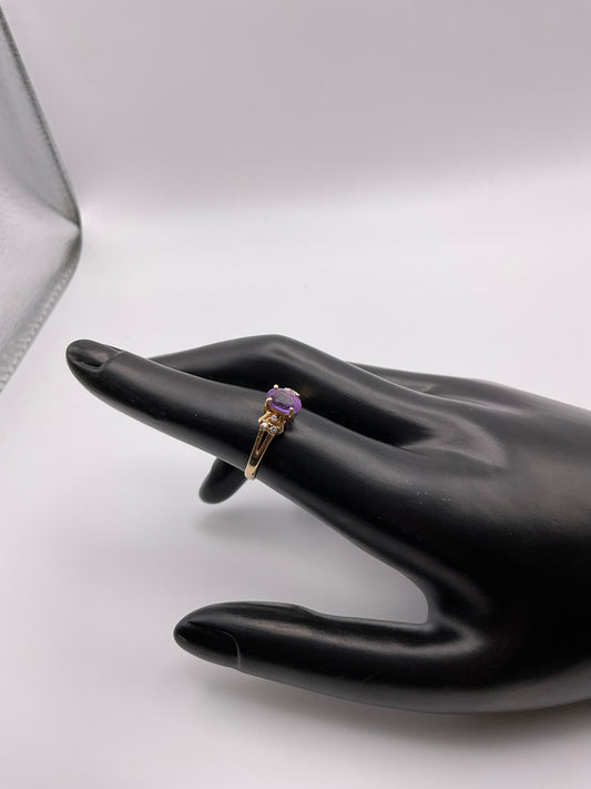2.0g 14k Yellow Gold Diamond/ Purple Ring size 6