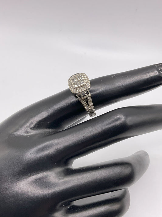 5.2g White Gold Diamond/ Sapphire Ring Size 7