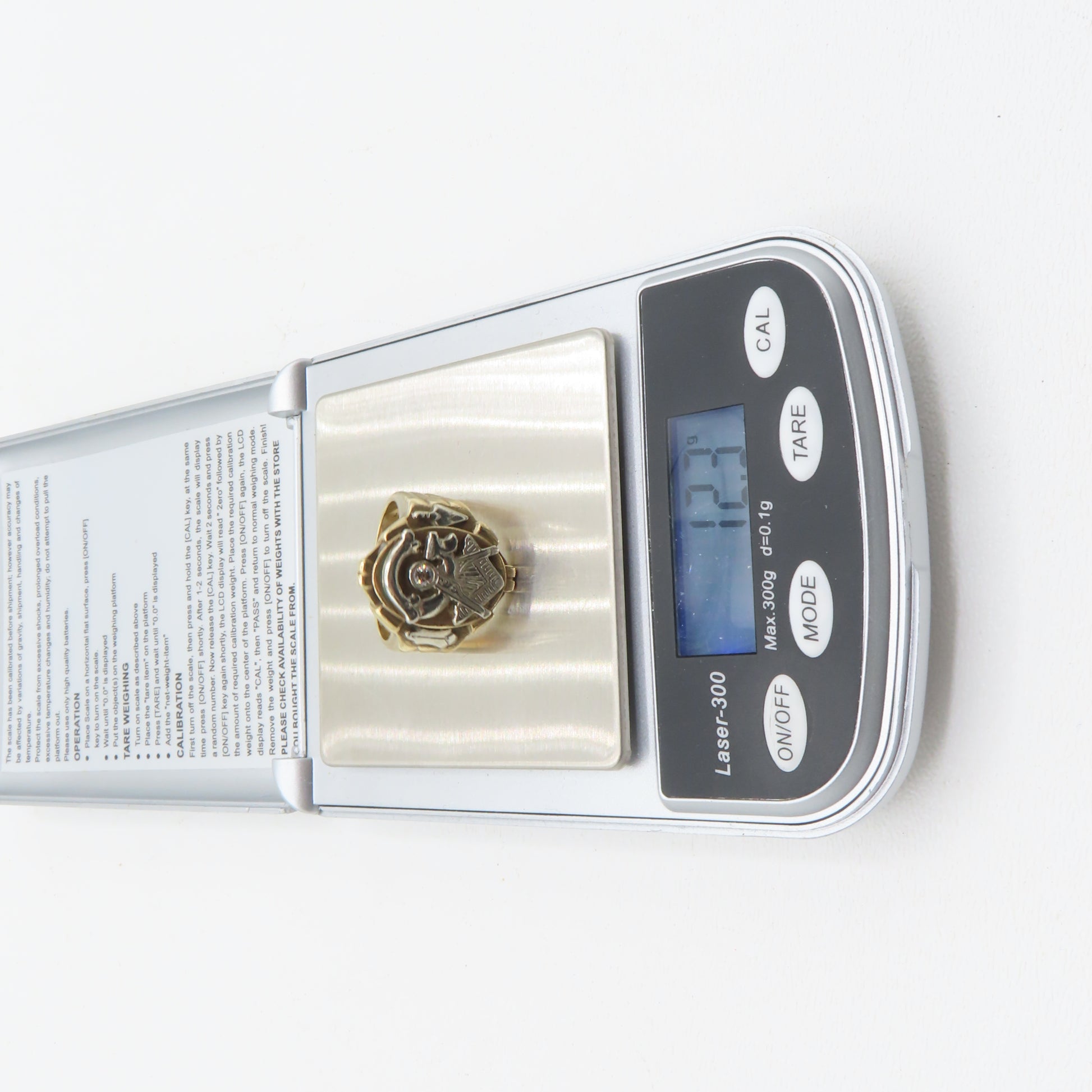 10K Two-Tone Gold Diamond Free Mason Masonic "G" Ring Mens Size 10.5 12.3g