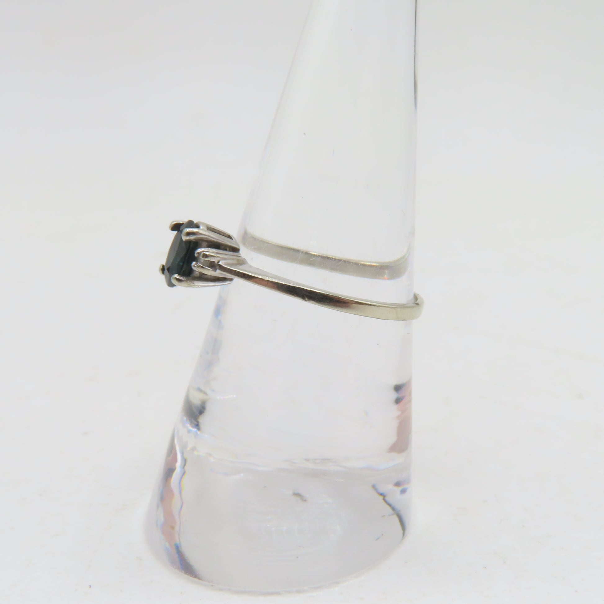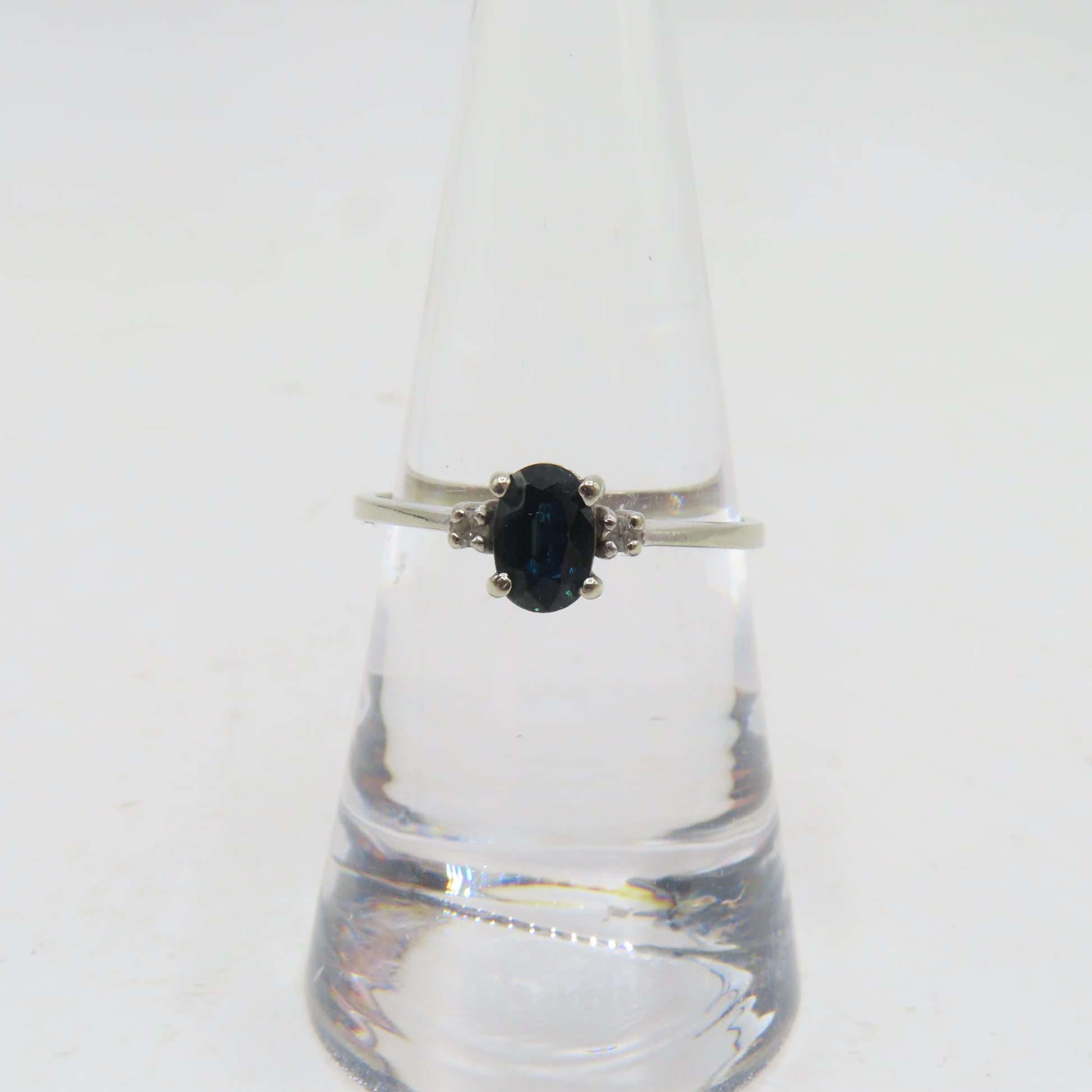 10K White Gold Oval Sapphire and Diamond Ring Size 7-3/4 1.4g