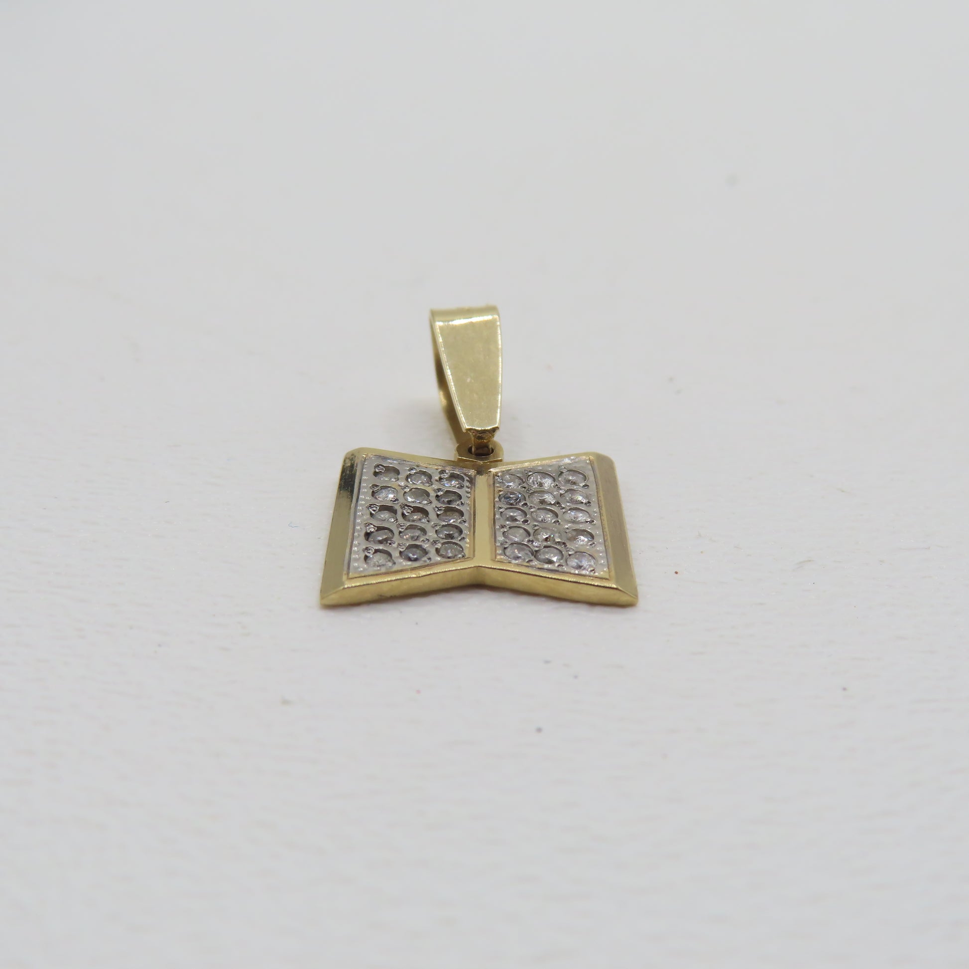 14K Two-Tone Gold Diamond Book Pendant 1" 3.5g