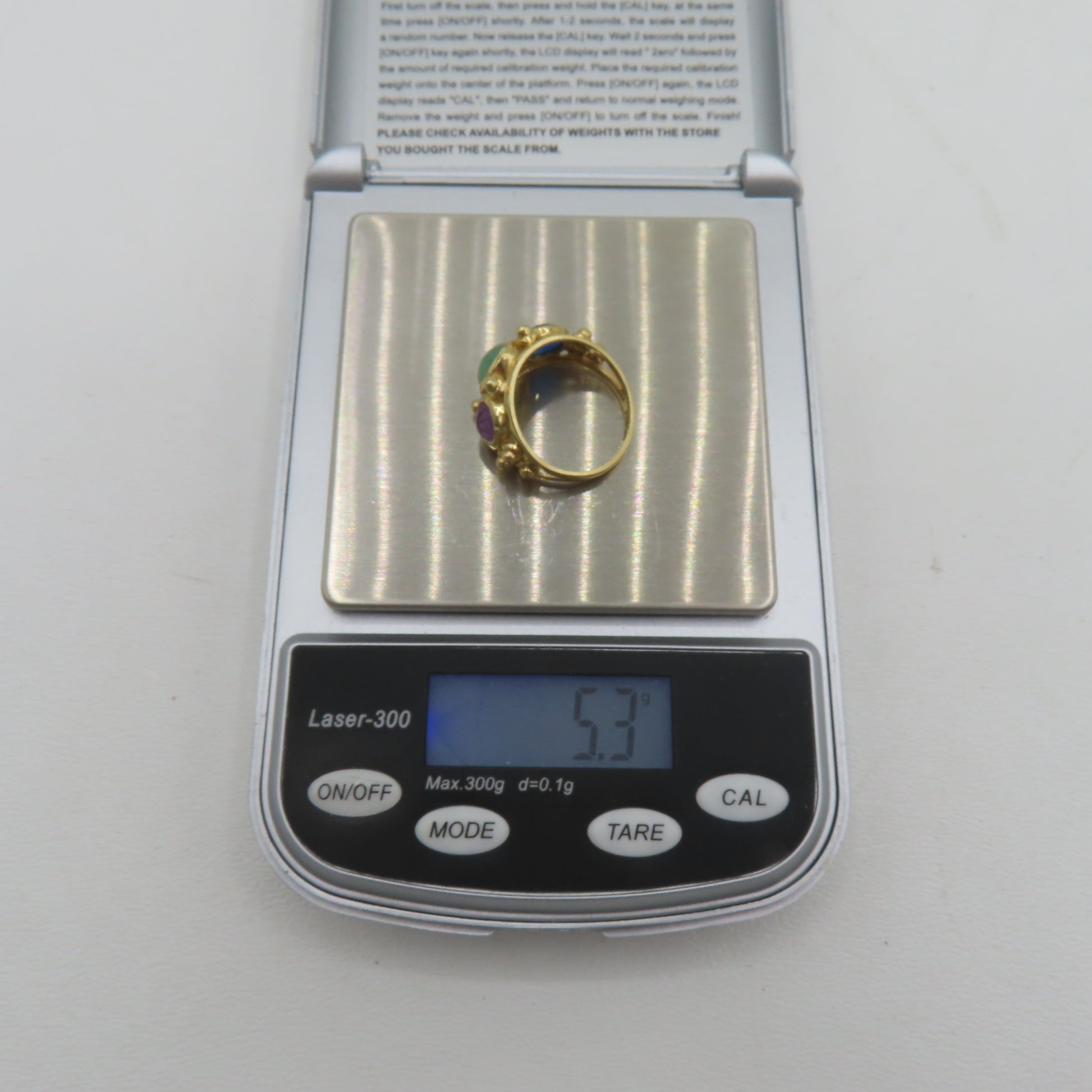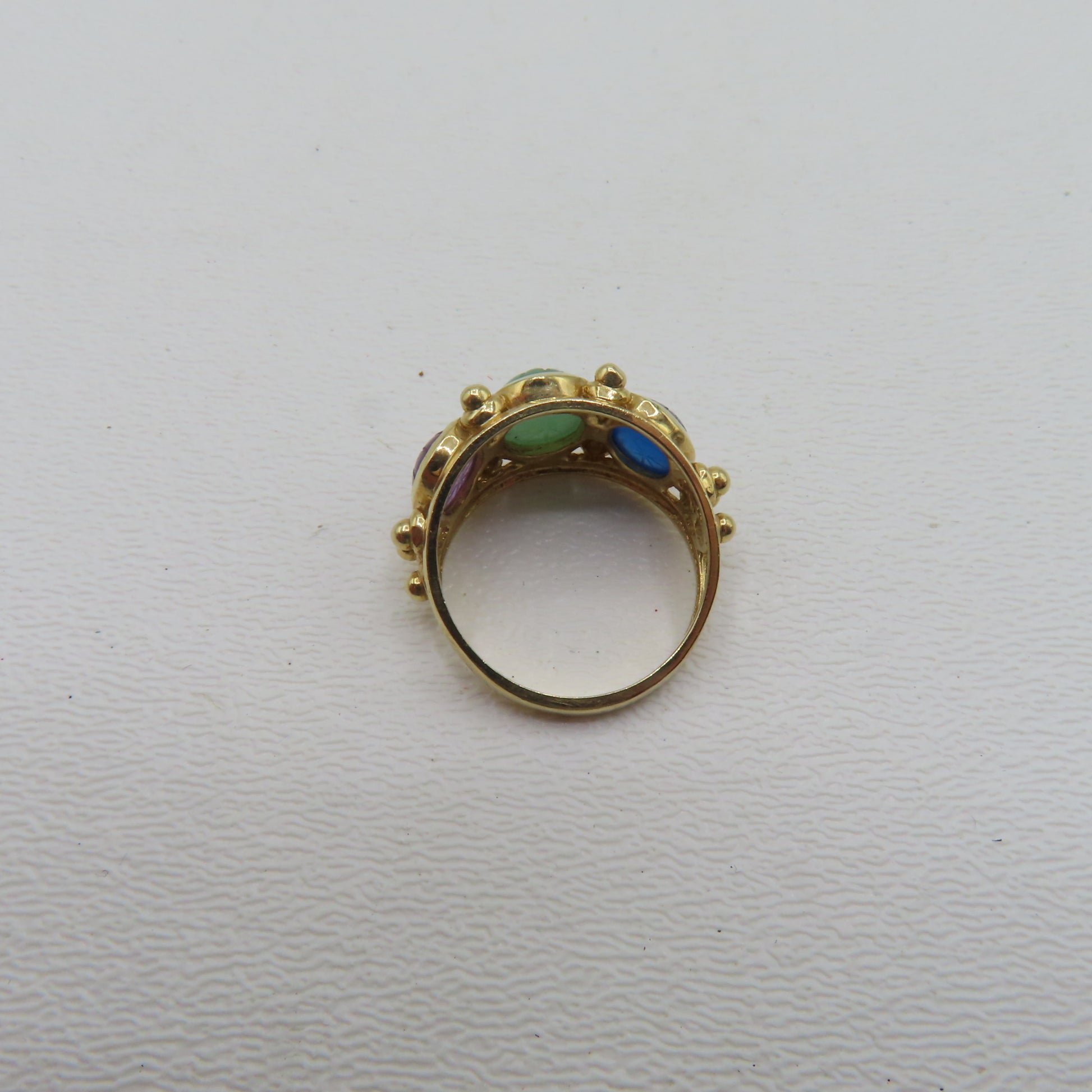 14K Yellow Gold Multi Gemstone Scarab Beetle Ring Size 7 5.3g