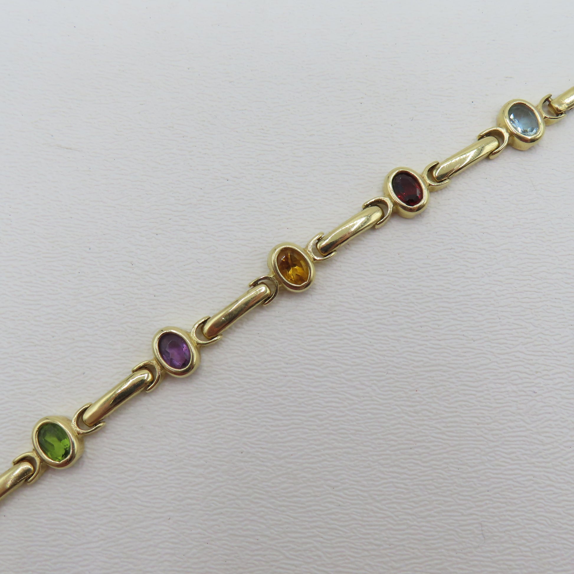 Style: Bar Link Bracelet with Oval Multicolor Gemstones