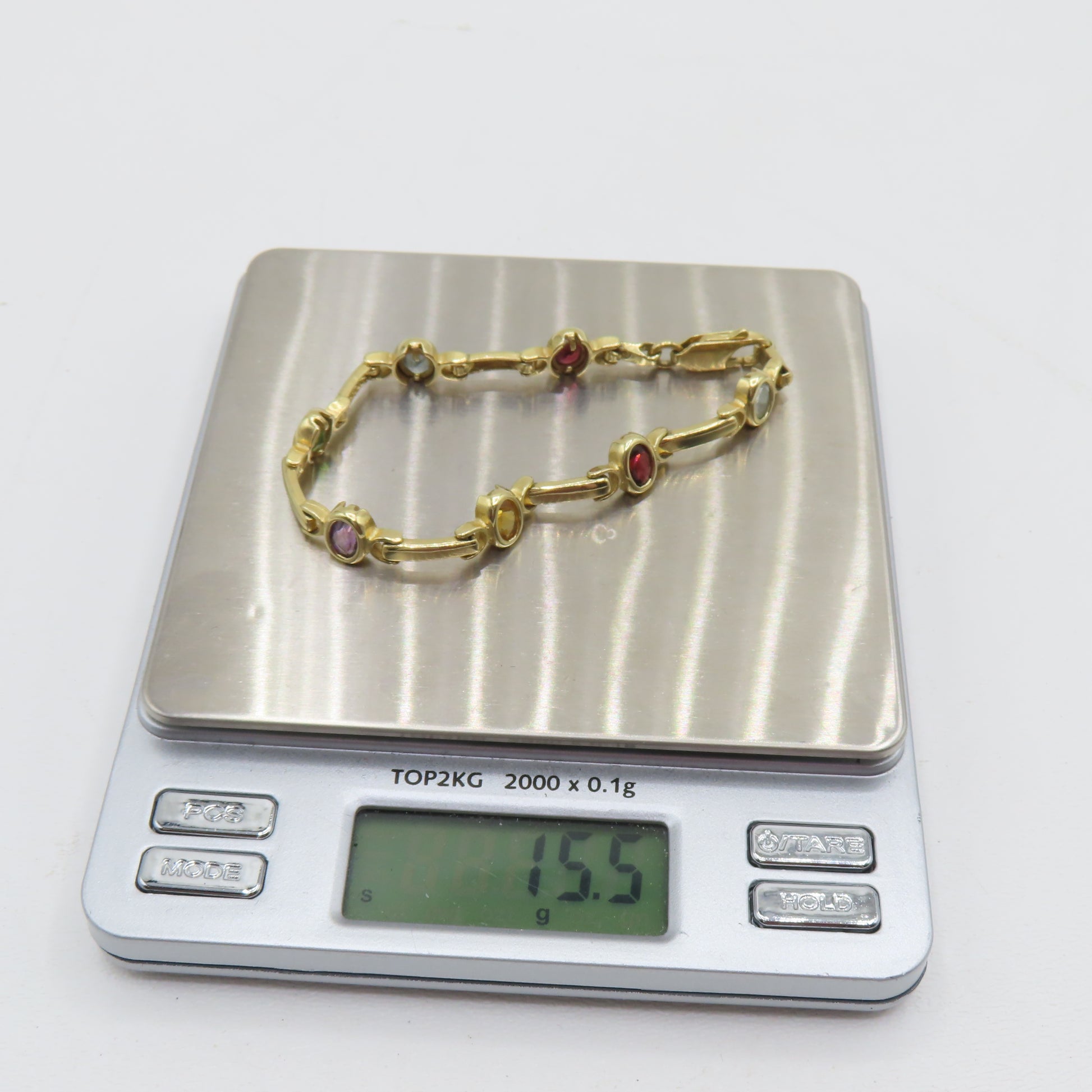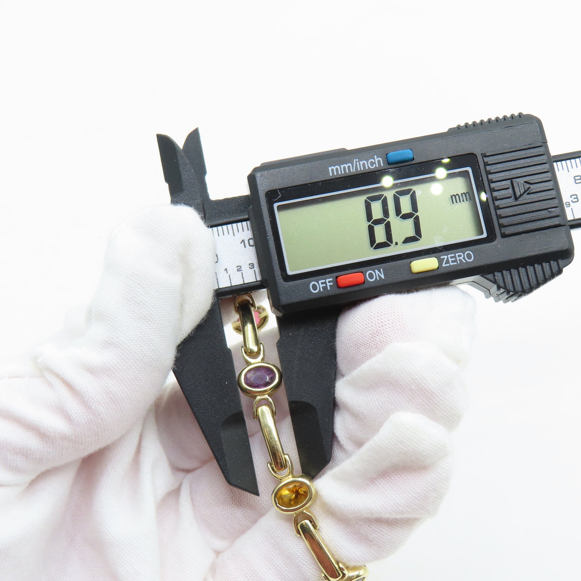14K Yellow Gold Multicolor Gem Stone Bar Link Bracelet 8.9mm 7" 15.5g
