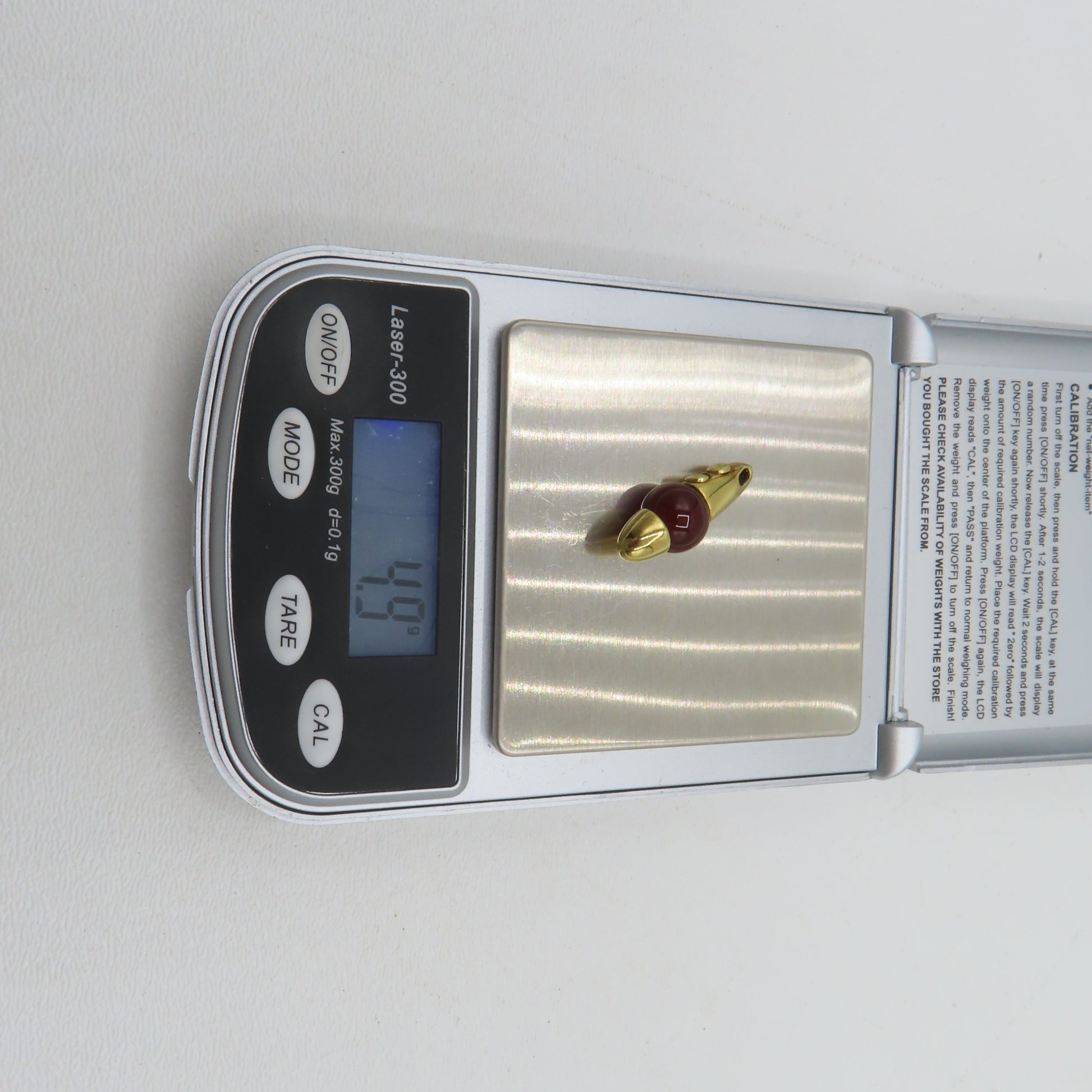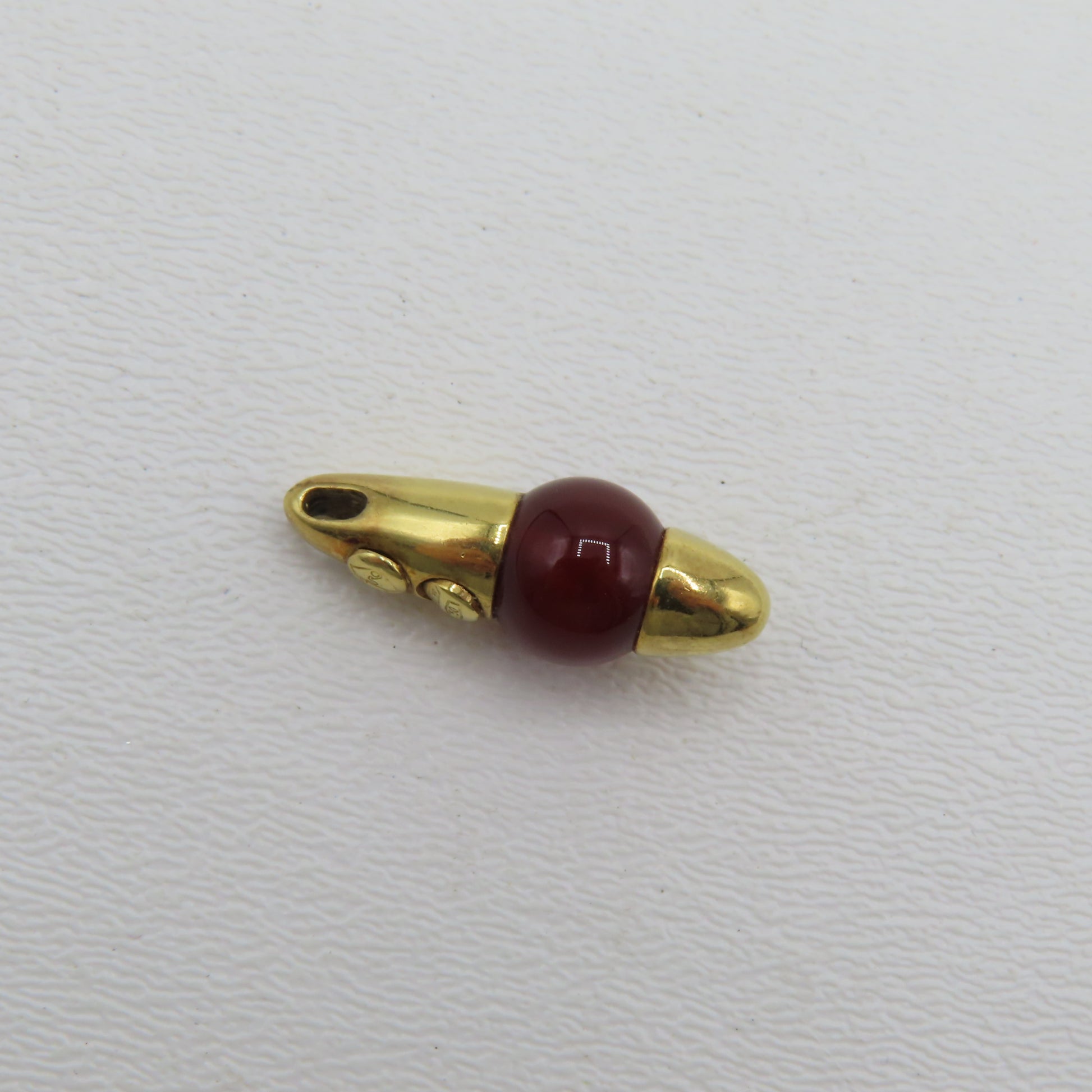 Elegant and timeless, this beautiful pendant features a rich round carnelian gemstone set in 18K yellow gold. The deep red hue of the carnelian adds a warm, sophisticated touch, complemented by the smooth, polished gold finish.