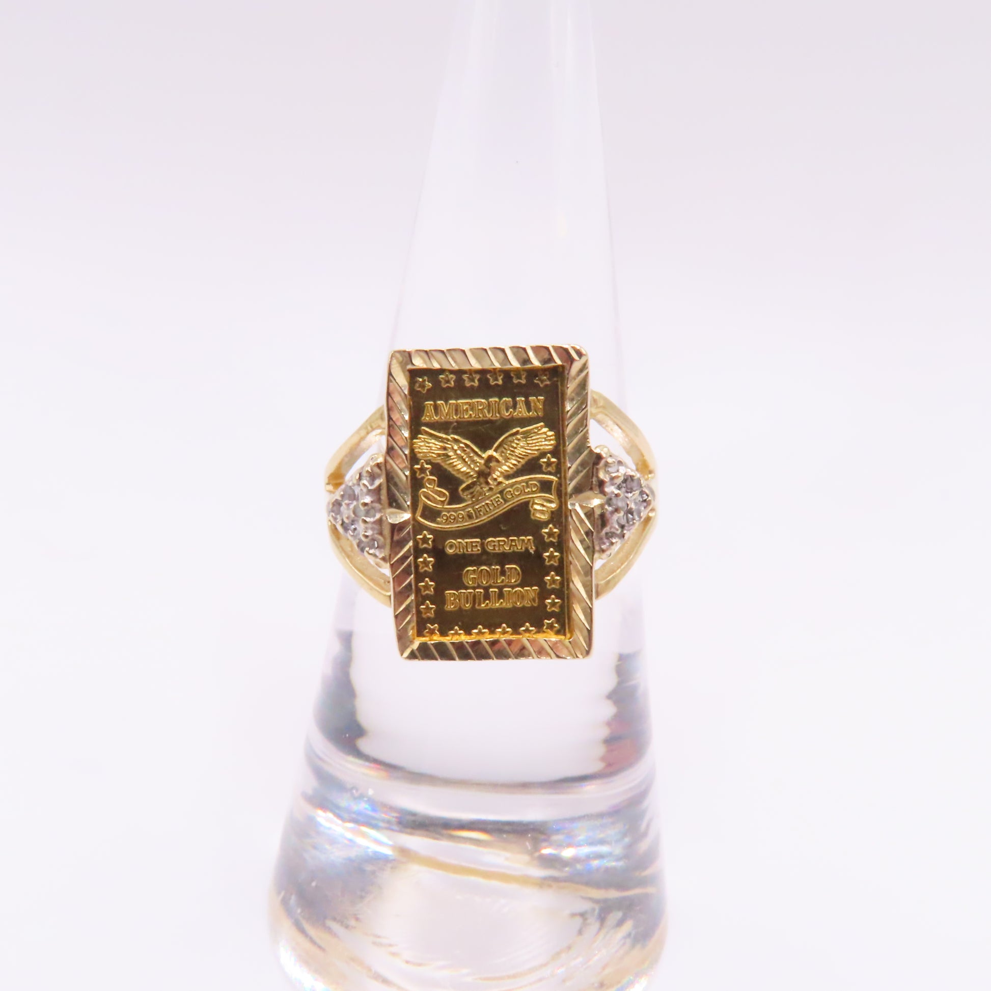.999 Fine Gold 1 Gram Ingot Bar 14K Yellow Gold Bezel with Diamonds Ring Size 7.25 3.5g