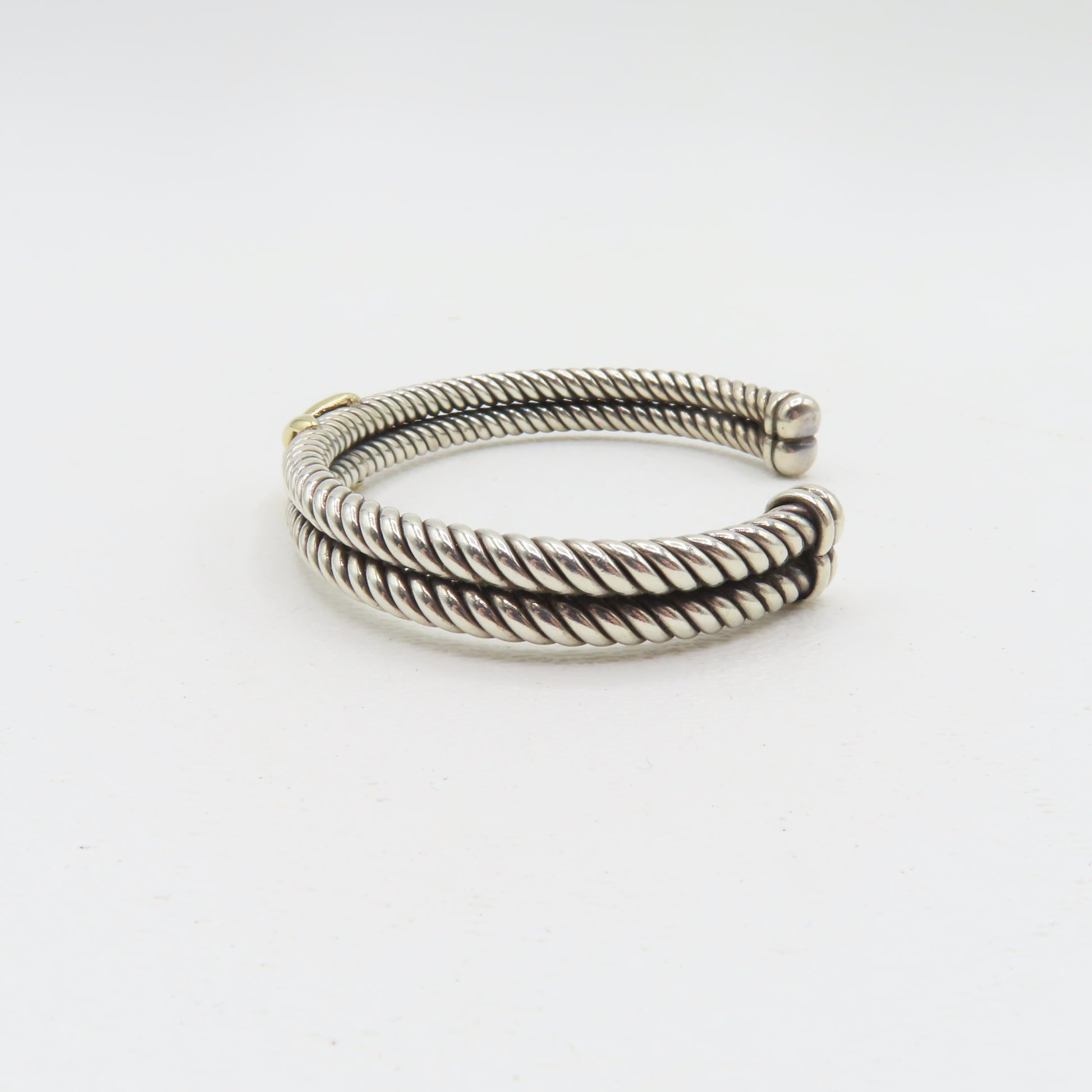 RdM Italy Sterling Silver & 18K Gold X Double Cable Cuff Bracelet 8.5mm 6-3/4" 20.7g
