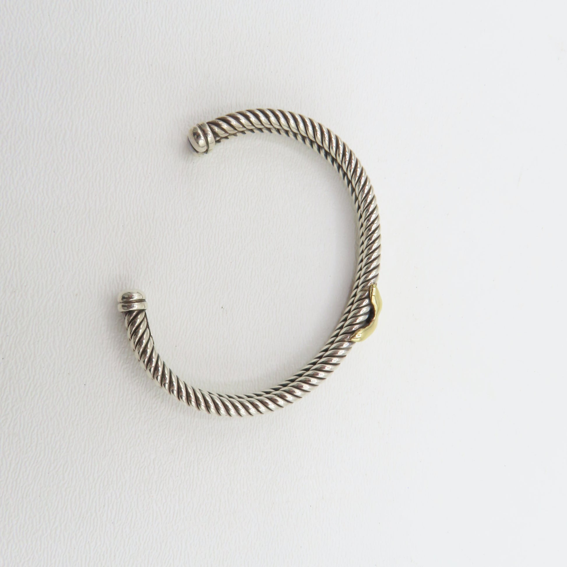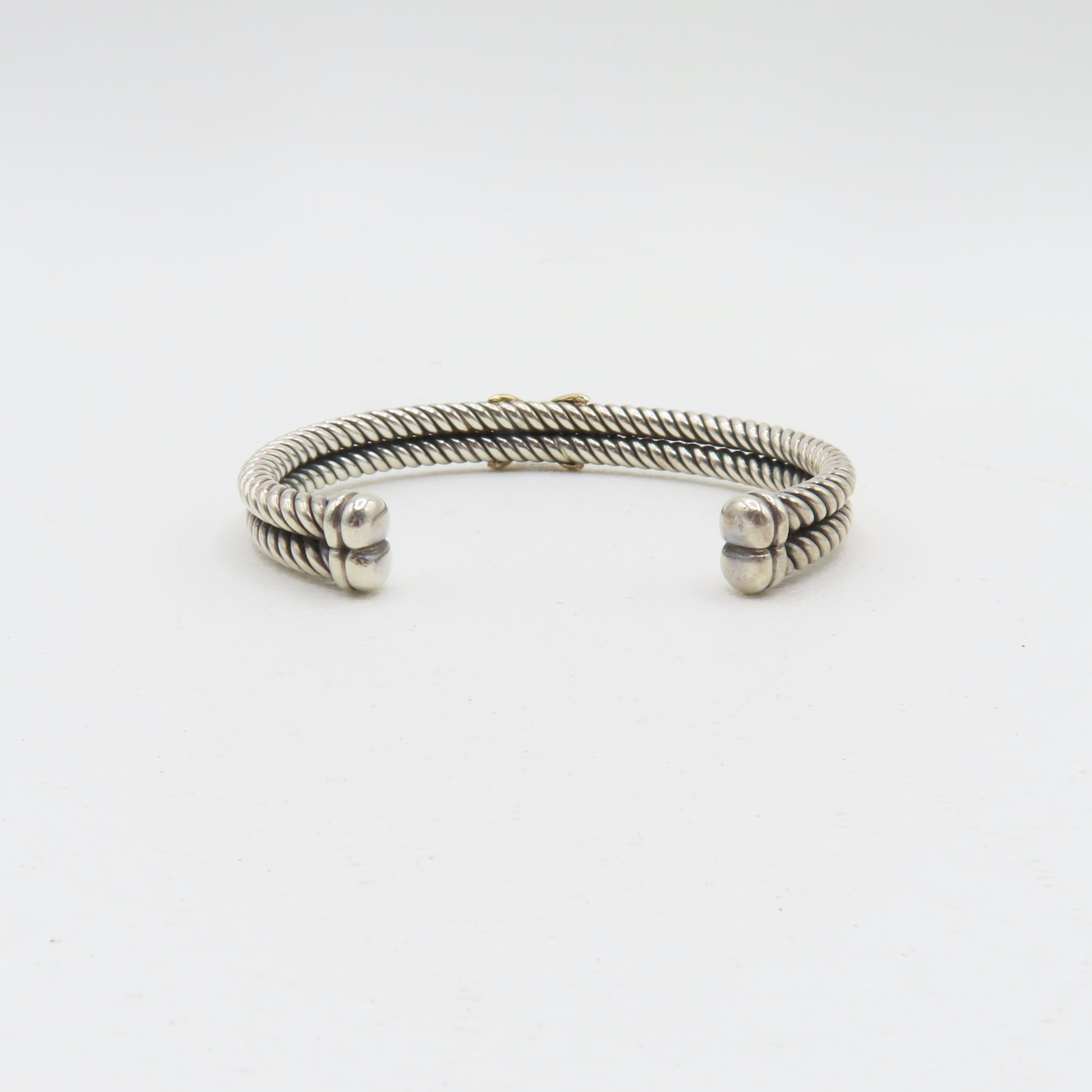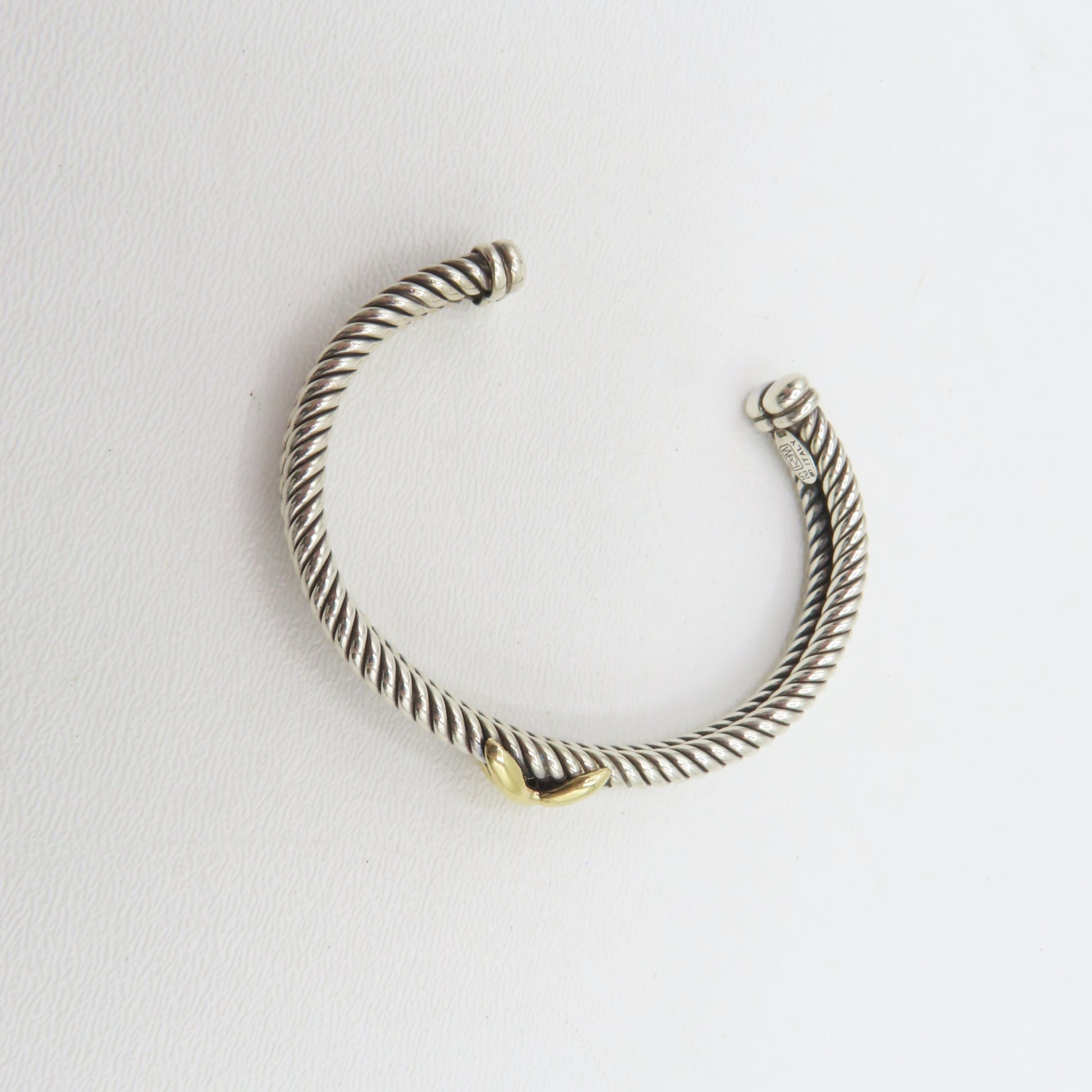 This striking cuff bracelet by RdM Italy showcases a timeless blend of sterling silver and 18K yellow gold. Crafted with a double cable design, the bracelet features polished 18K gold "X" accent that provides a bold yet elegant contrast.