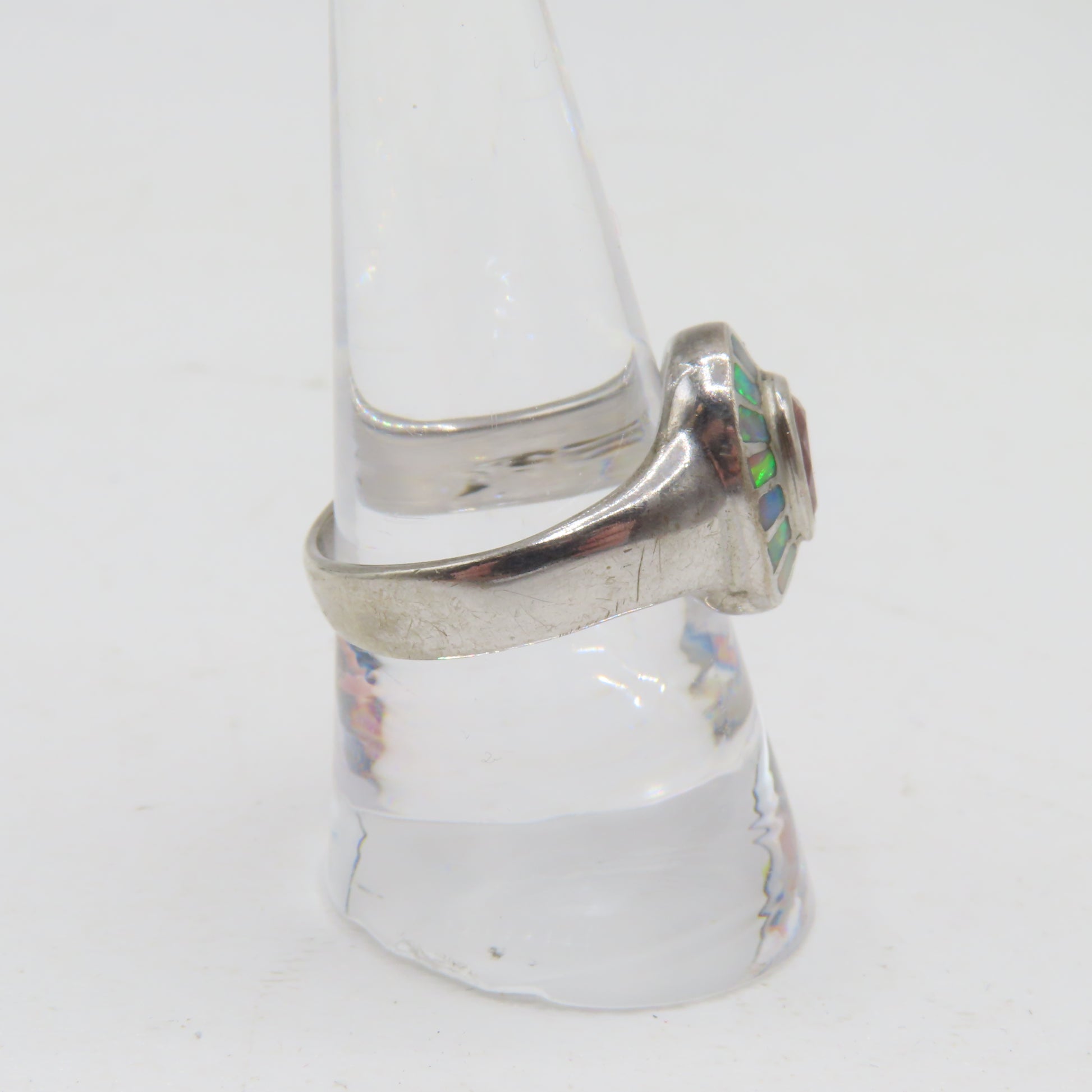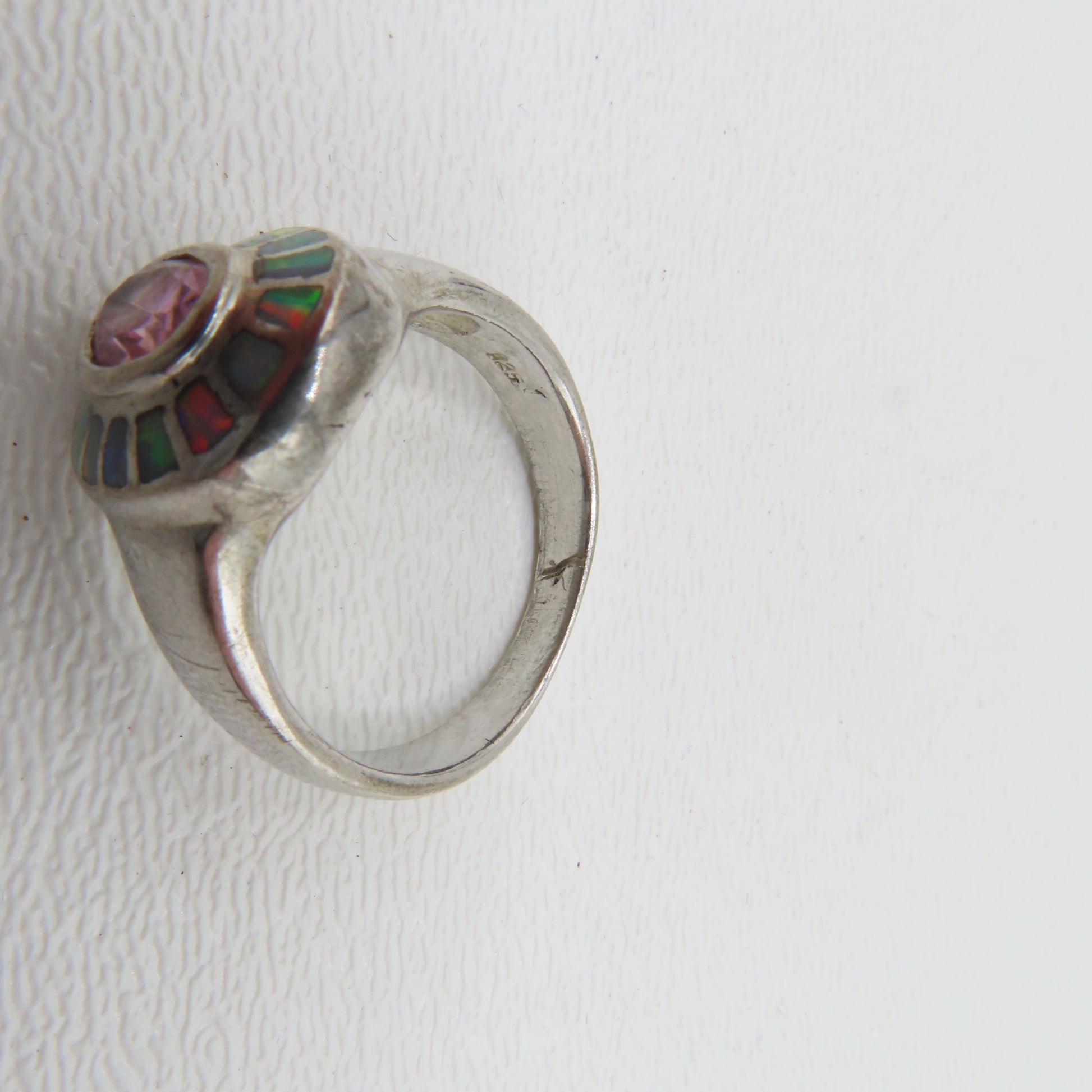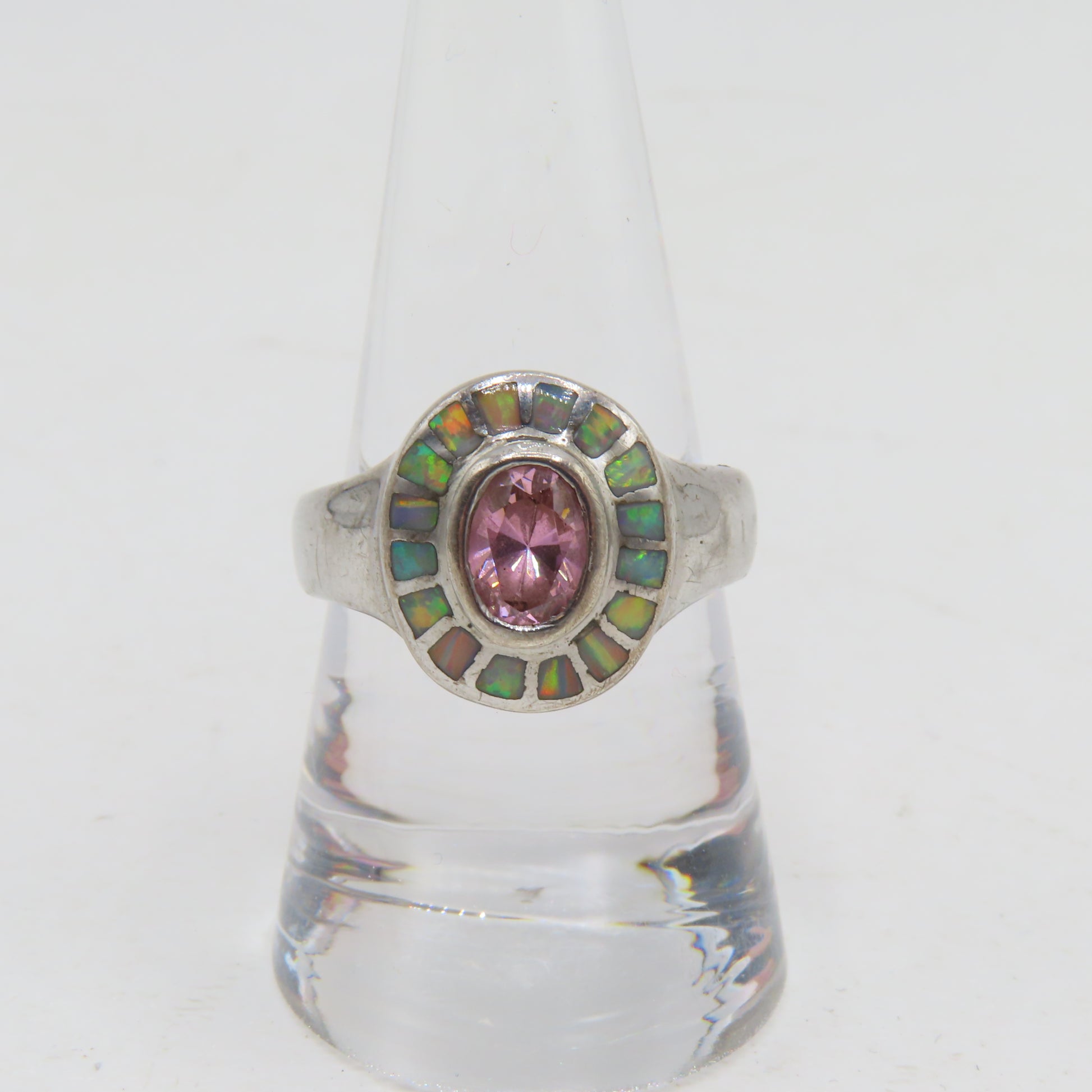 Sterling Silver 925 Pink Tourmaline Opal Halo Ring Size 8.5 6.5g