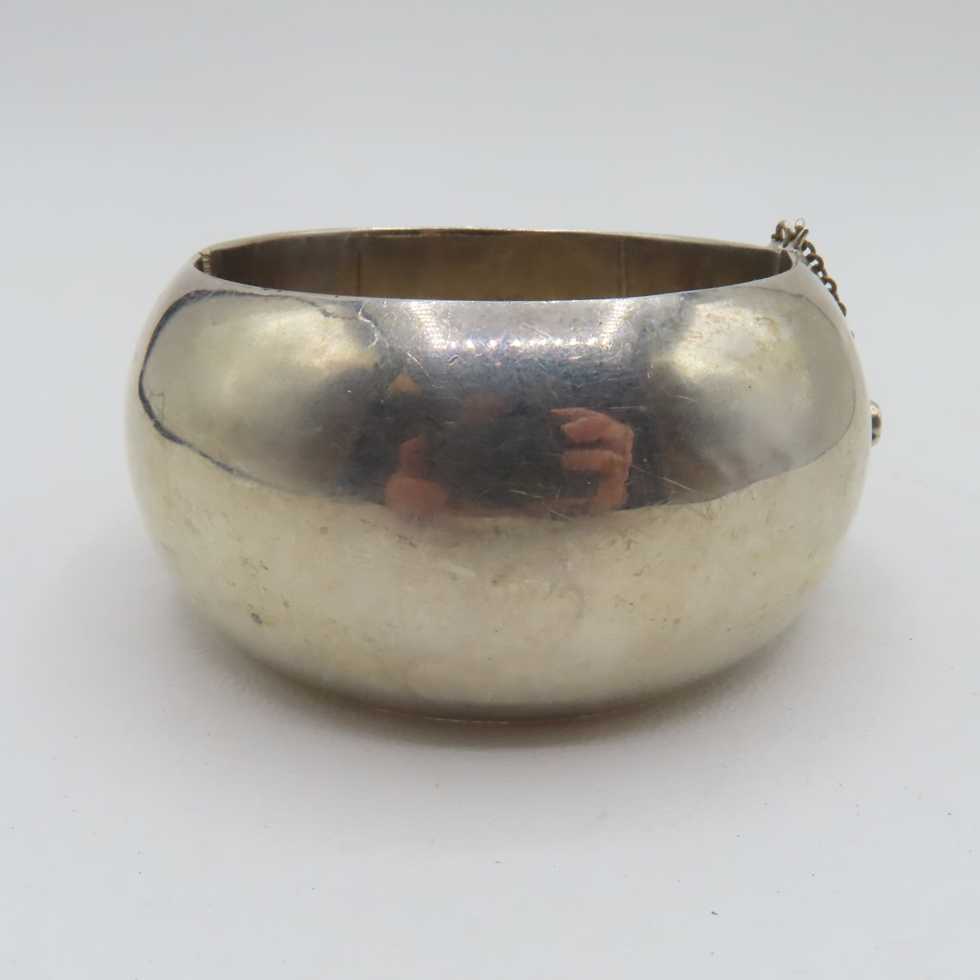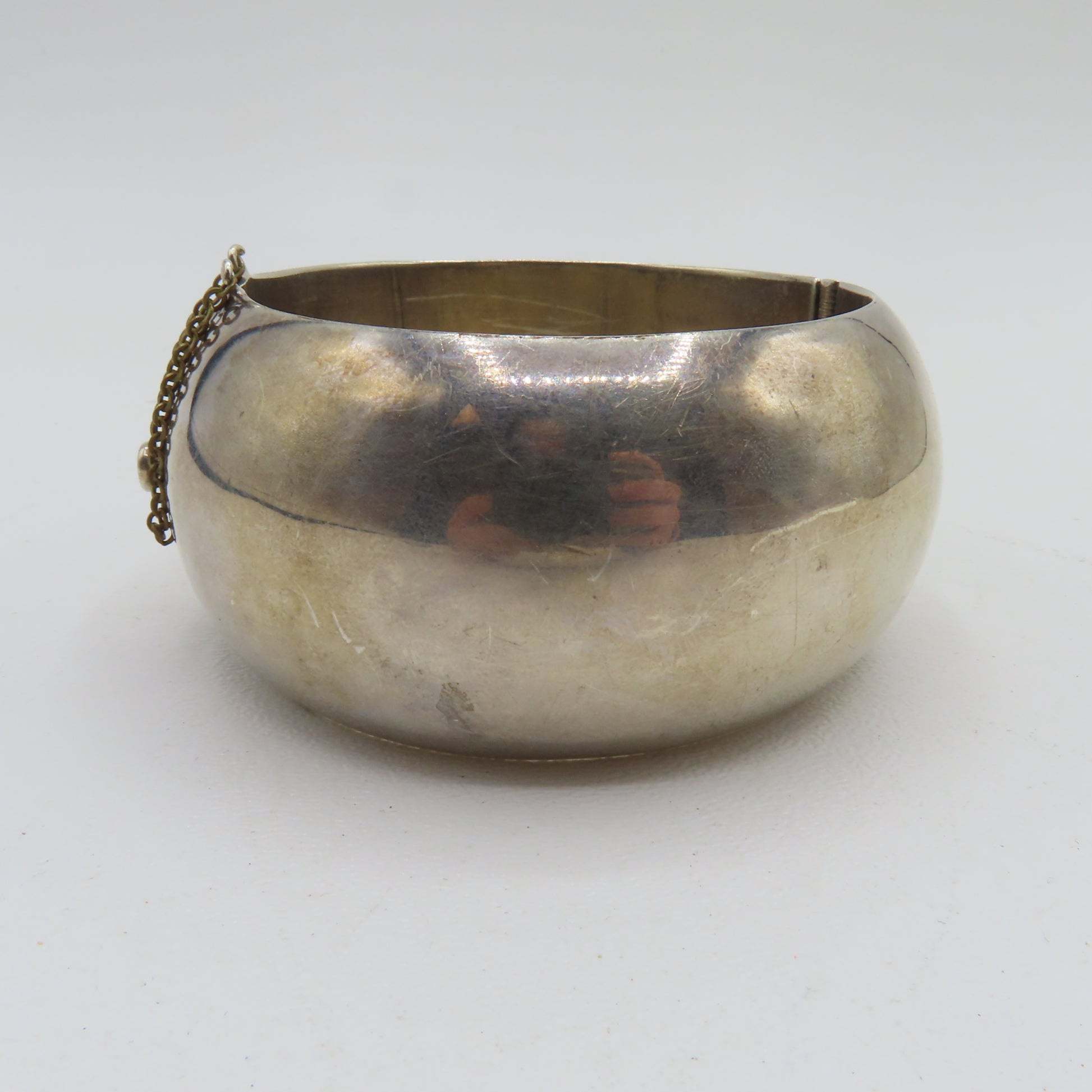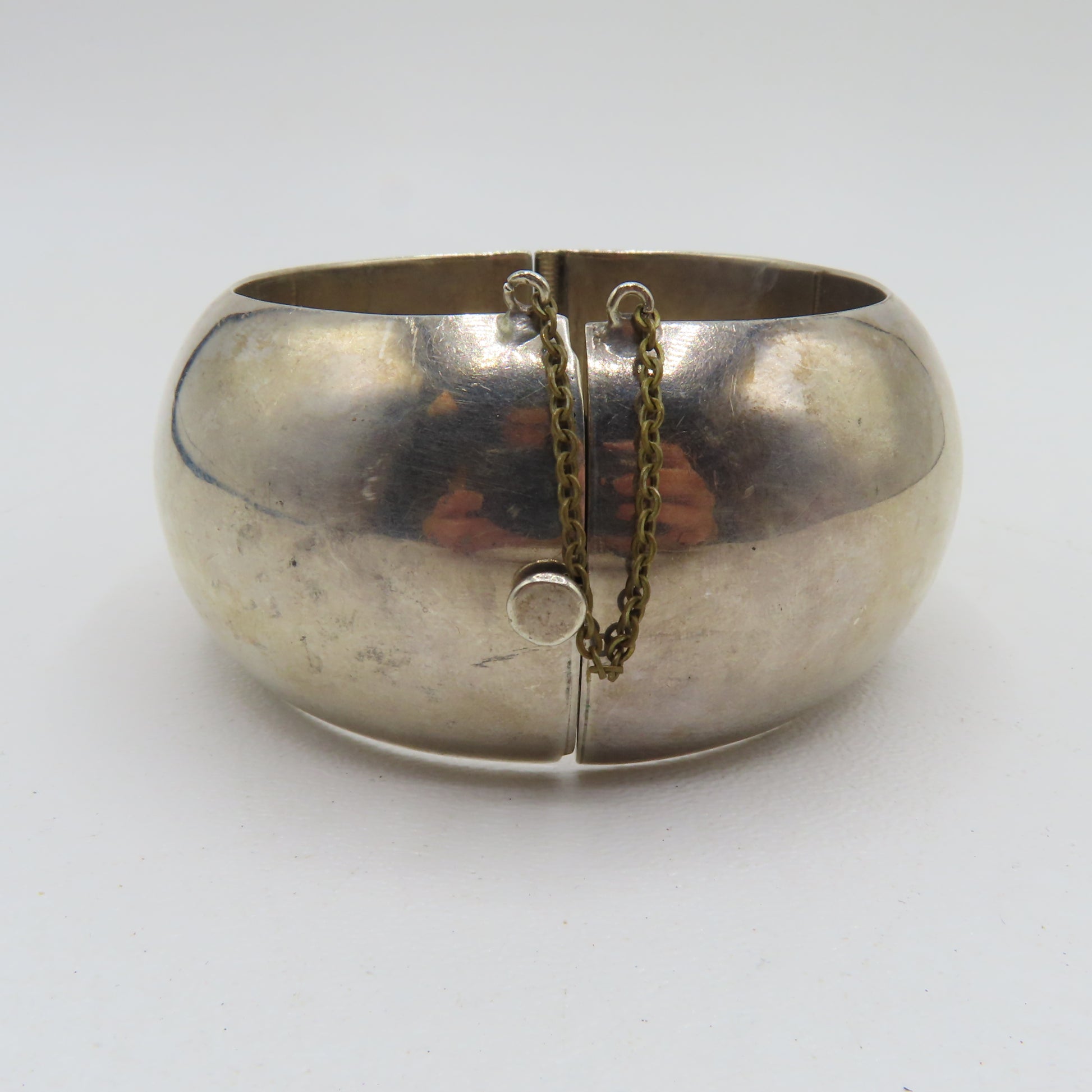 Sterling Silver 925 Taxco Mexico Chunky Hinged Bangle 38mm Bracelet TM-80 8" 106.6g