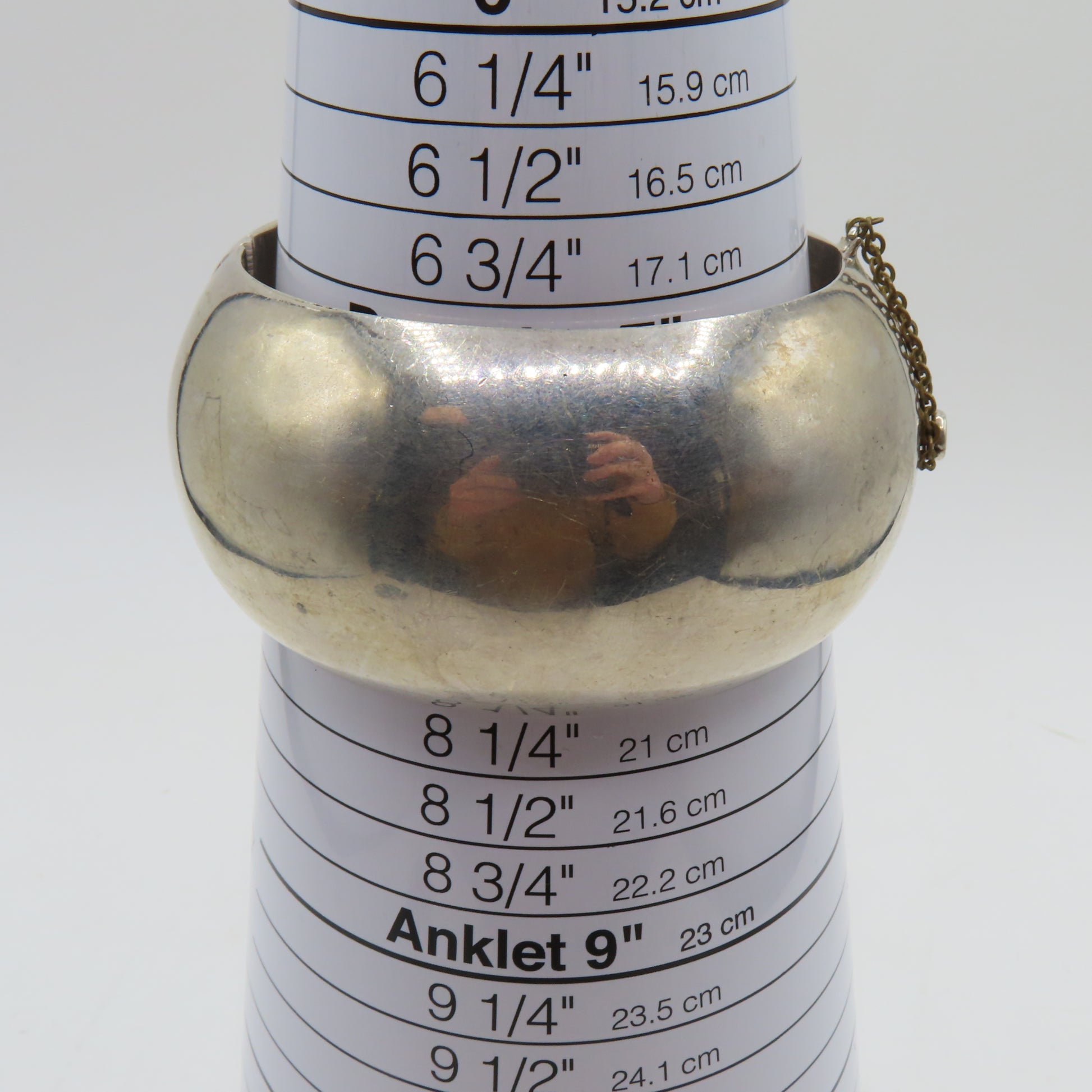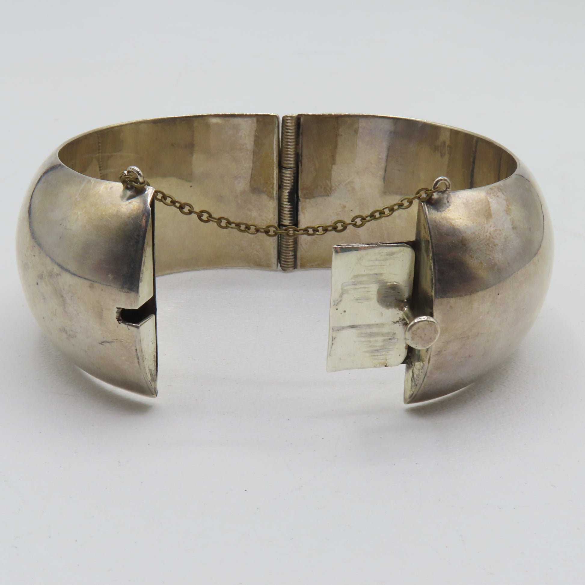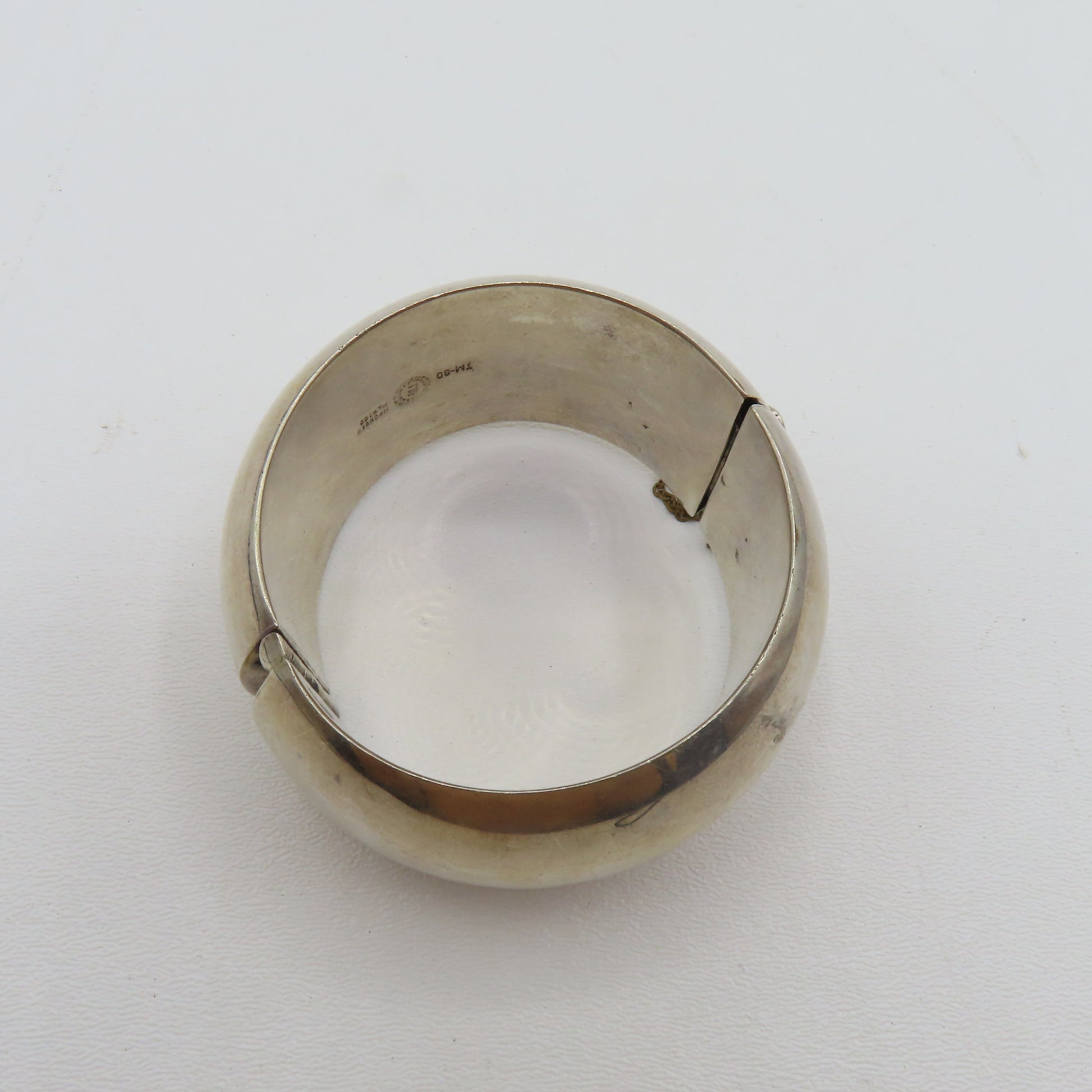 Add a bold and timeless touch to your jewelry collection with this vintage Taxco Mexico sterling silver bangle bracelet. Expertly handcrafted, this chunky hinged design showcases the exceptional craftsmanship and quality that Taxco silversmiths are known for.